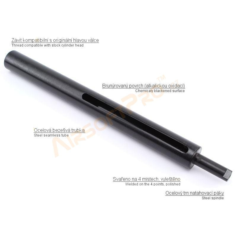 Steel durable cylinder is required in case of any upgrade. Stock cylinder is made of aluminium and weak. It is easy to damage it with stronger upgrade spring. Our AirsoftPro steel cylinder was sucessfully tested on the strongest springs.