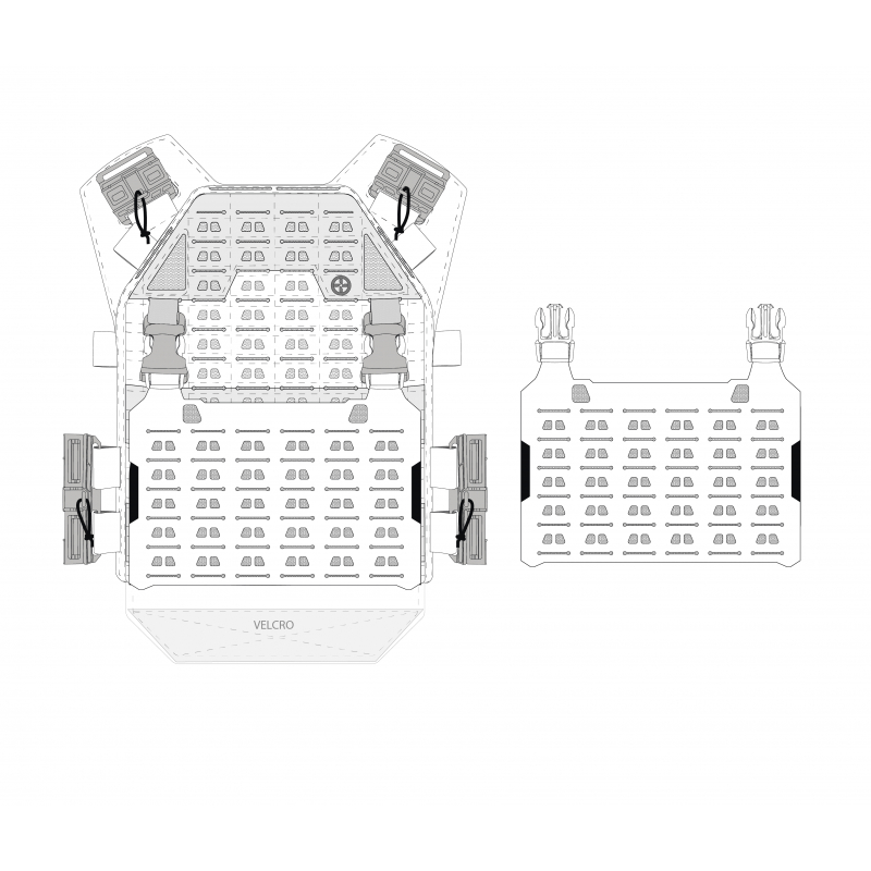 Do you own multiple weapons and want to use only one plate carrier with all of them? Do you carry your primary rifle and an SMG for CQB into the same game? Want to adapt your gear in just a few seconds depending on the tactical situation? The Front MOLLE Flap panel gives you quick and easy replacement of the entire front panel via 2 buckle clips. The flap has a low profile, lightweight construction, and the MOLLE slots are laser-cut. You can mount any pouches you need (for AR15 / M4 mags, for example). If you switch mid-game to a CZ EVO, you simply swap the panel for another one with EVO pouches — no need to change your whole vest, just the flap. Exactly as shown in the video below.