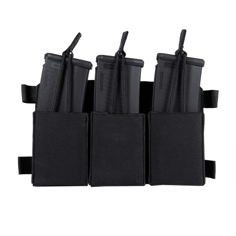 Replaceable front flap with 3 elastic pouches for M4 (AR15) magazines.