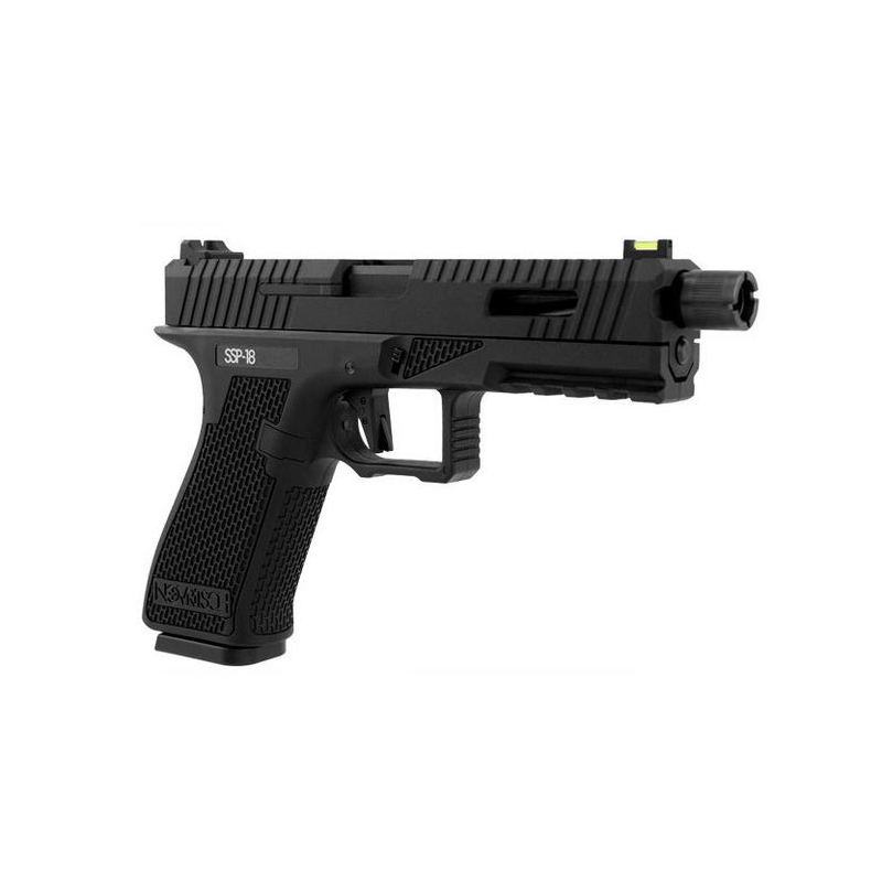 SSP18 GBB Airsoft Pistol by Novritsch in black and green.