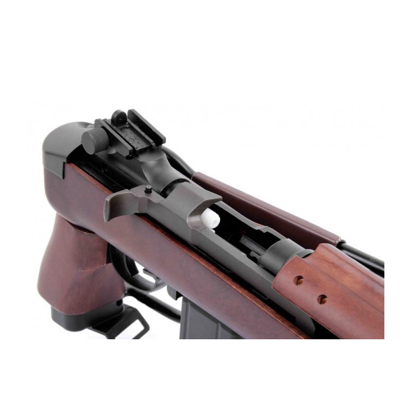 This replica of WW2 rifle is CO2 operated model, which made from high quality real-wood body, metal barrel, with blow back action. Package with a magazine of 15 rounds capacity, and a sanding sponge for customizing your own M1 Carbine into vintage style.