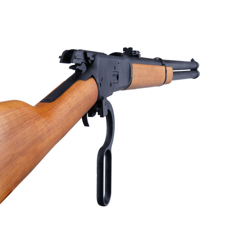 This replica of the Winchester M1892 is made from high-quality materials that ensure long-lasting durability and a realistic appearance. The full metal construction along with the carefully crafted wooden stock gives the rifle an authentic look and feel.