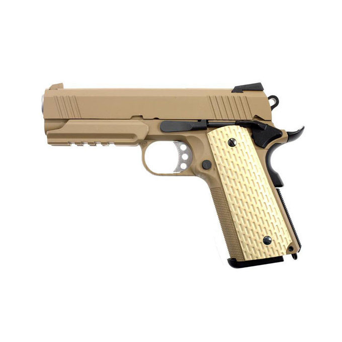 WE GBB Gas Pistol DESERT WARRIOR 4.3 (M1911 variant) in tan finish.