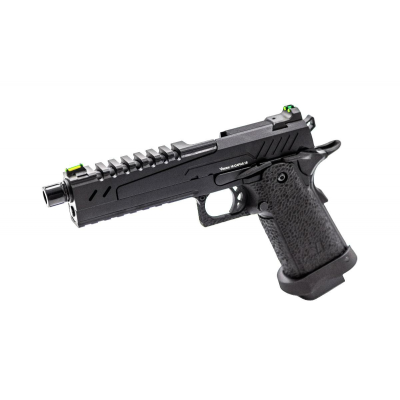With respect to the motto of IPSC, we present the model of the GBB pistol Hi-Capa from VORSK, combining precise design, powerful performance, and lightning-fast response. A tuned model for accuracy, reliability, and durability featuring fiber-optic sights, an extended magwell, and a CNC metal slide.