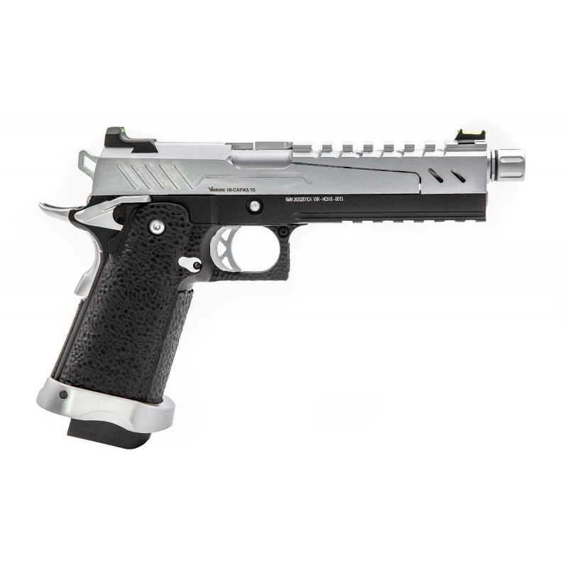 With respect to the motto of IPSC, we present the model of the GBB pistol Hi-Capa from VORSK, combining precise design, powerful performance, and lightning-fast response. A tuned model for accuracy, reliability, and durability featuring fiber-optic sights, an extended magwell, and a CNC metal slide.