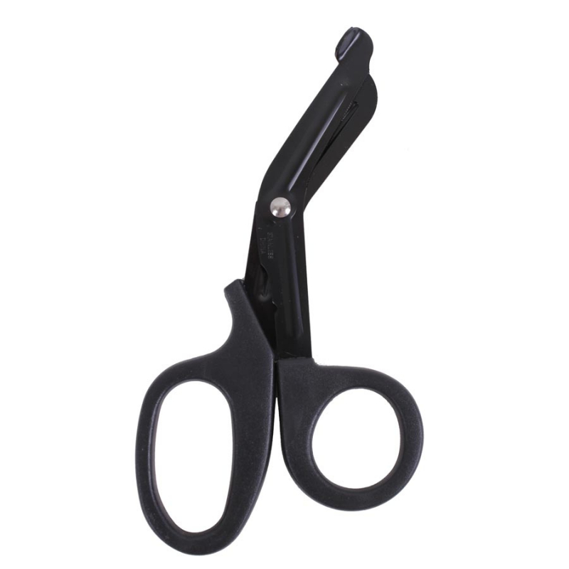 This scissor is made for cutting clothing and bandages in case of emergency. This scissor has no sharp edge and is therefore safe to stow away.