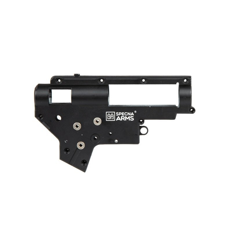 A durable gearbox V2 frame made of metal, dedicated for AR15 carbine replicas. The frame is adapted to ESA™ quick spring change system.