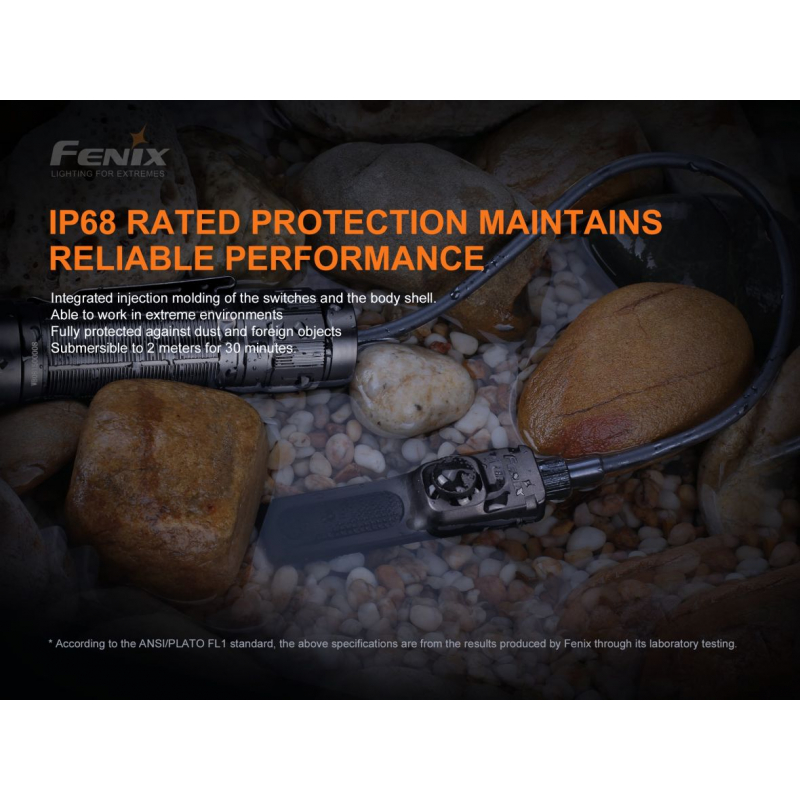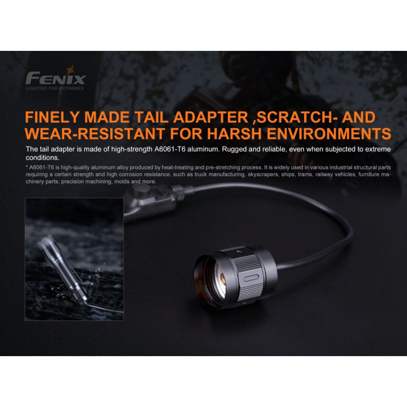 Suitable for use with a flashlight mounted on a long gun. Two noiseless switches are located at the end of the cable. One push-button with momentary press activation function and also the possibility of permanently lighting the flashlight (always up to maximum power) and the other flat pressure switch for switching on the strobe. The switch also has a velcro strap, which will help you place it anywhere on the gun. We recommend purchasing the Fenix ALG-05 mount to attach the switch to the gun rail.