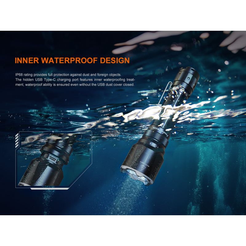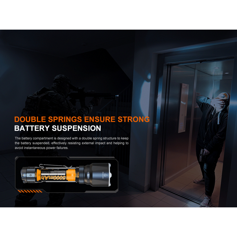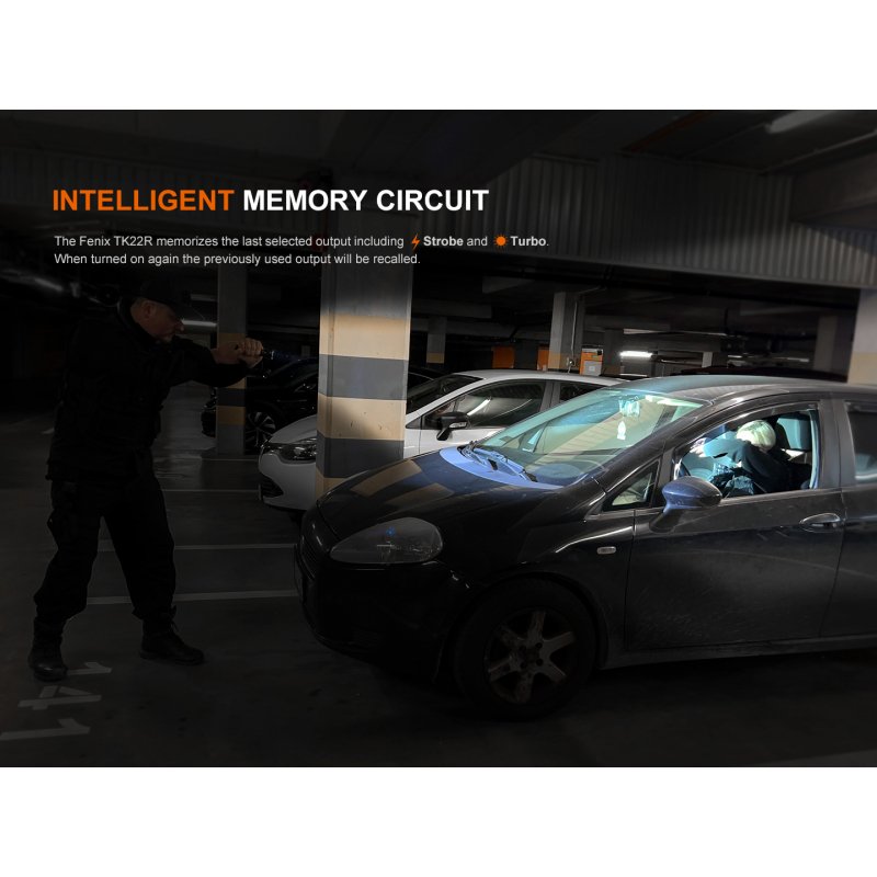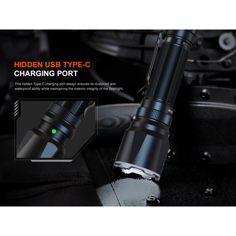 The Fenix TK22R tactical LED flashlight is a true elite among flashlights. With a powerful light output of up to 3200 lumens, a stunning range of up to 480 metres, a tungsten-tipped rim, up to 50 hours of battery life and USB-C charging. In short, a royal flashlight for armed forces, pros, hunters and DIYers.