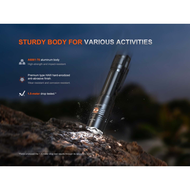 Looking for a compact flashlight with 3000 lumens and over 400 meters of throw? Want light that adapts to any situation with profiles for tactical, duty, and outdoor use? Need a reliable tool with long runtime, USB-C charging, and a rugged build? The Fenix PD36R ACE delivers it all. Equipped with a premium LED diode Luminus SFT-70, it provides 7 modes including SOS and strobe. The rechargeable 21700 Li-ion battery (5000 mAh) charges directly in the flashlight, protected by a threaded collar. The unique SET button lets you instantly switch between 3 profiles – tactical, duty, or outdoor. With digital regulation, the PD36R ACE delivers stable output as the battery discharges, and the side switch indicator shows battery status. Its Type III hard-anodized aluminum body resists tough use, while compact dimensions and tactical switches make it a perfect flashlight for professionals, hunters, and adventurers.