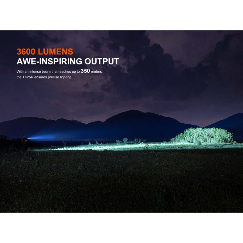 Extreme output up to 3600 lm with a 350-meter beam distance.