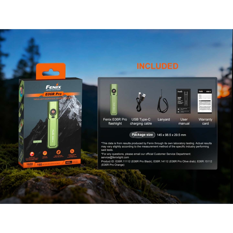 Are you looking for a powerful EDC flashlight that offers more than just white light? Do you want a compact flat shape that won’t get in the way in your pocket, yet delivers extreme performance, versatile functions and professional build quality? Do you need a reliable everyday tool for work, travel and emergencies? Then the Fenix E06R PRO is made for you. Compared to the smaller E06R and E03R V2.0 models, it provides a much higher output of 1600 lumens, a beam distance of 160 meters, and a combination of spot long-range light and wide neutral white floodlight. It also includes a 365 nm UV light, a red laser and a unique Breathing light for discreet signalling. Thanks to the integrated Li-Pol battery, USB-C charging and refined user interface, the E06R PRO is the perfect flashlight for preppers, bushcraft and everyday EDC carry.