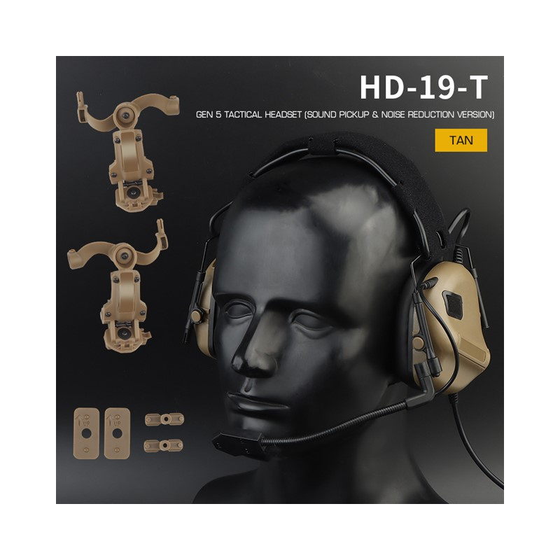 Helmet Mount Adapter for Headset by FMA in Dark Earth. Designed for Peltor Comtac headsets and their replicas (FMA, Tac-Sky, and others). ARC mount type (for FAST, MICH, and AIRFRAME helmets). Allows for wearing a tactical headset directly on the helmet. Rotating base for precise adjustment of the ear cups. Compatible with helmet cutouts.