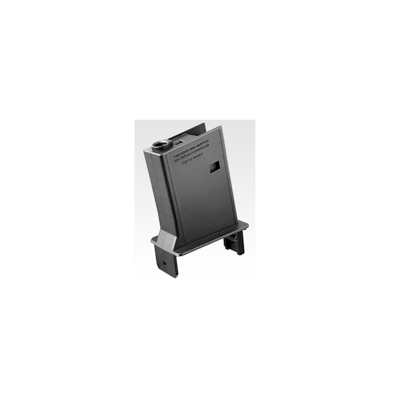 The plastic magazine adapter for the "double drum" from Tokyo Marui allows it to be used with Next-Gen M4 / 416 and Scar-L rifles. The adapter is attached to the double drum 1200 BBs using screws and is ready for use. In theory, it is possible to "fit" the adapter to drum magazines from other manufacturers with a similar mechanism, but this requires significant modifications to the magazine body or the adapter.