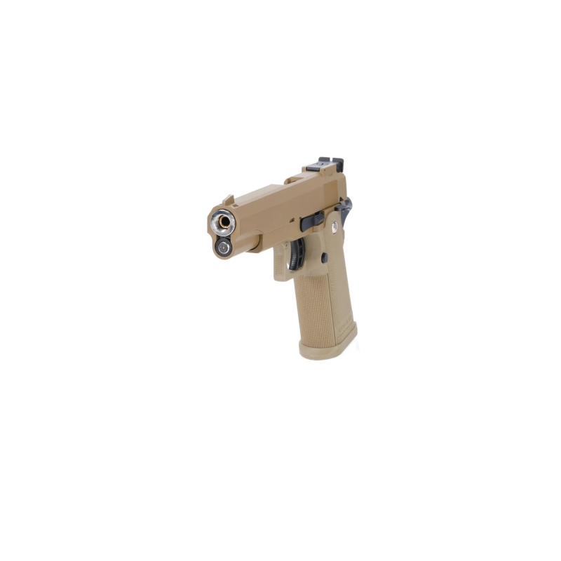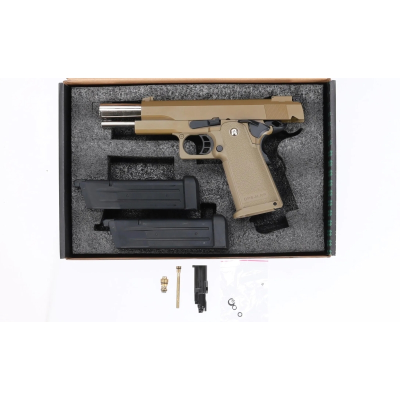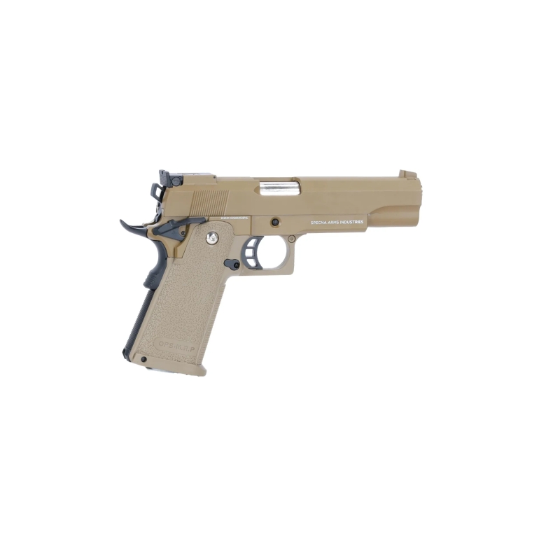 Looking for a gas-powered Hi-Capa pistol that offers durability, performance, and affordability? Want a powerful blowback pistol with a textured grip for better control and realistic handling? Need a complete setup with two magazines and spare parts right out of the box? The Specna Arms SA-VGP04 VAPOR™ delivers exactly that. Designed to be versatile and user-friendly, this pistol suits both newcomers and experienced players who appreciate Tokyo Marui Hi-Capa compatibility. It’s powered by medium-pressure Green Gas and features a solid metal slide paired with a polymer frame that ensures reliable performance and a realistic feel. The pistol includes the classic TM Hi-Capa safety system – a functional thumb safety and grip safety. Internally, it has an 11 mm CW barrel thread for suppressor or compensator adapters. Thanks to its tight sealing, included spare nozzle, and dual magazine setup, the SA-VGP04 serves perfectly as both a primary or backup sidearm for CQB or field engagements.