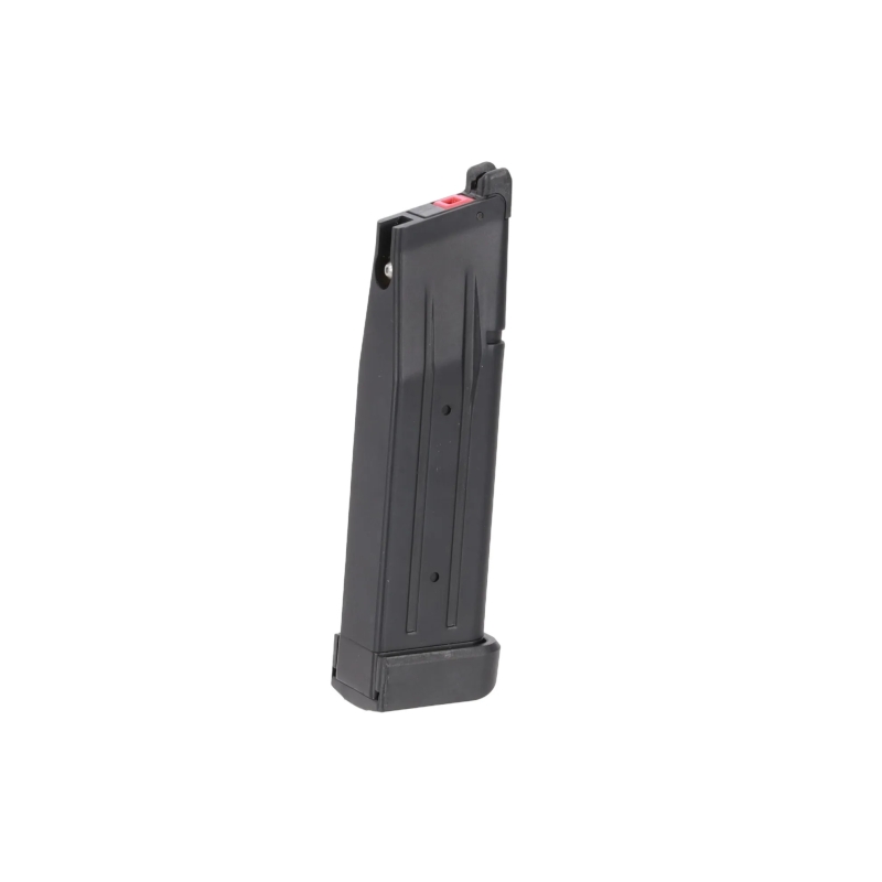 Metal magazine for airsoft gas-powered Hi-Capa pistols.
