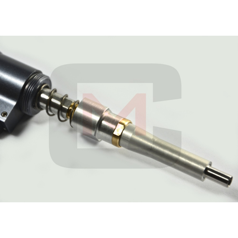 Conversion has independently movable nozzle - just like in the AEG rifles.Location of Nozzle is not directly linked to the location of the gas supply element. This solution makes that - when conversion taking a shot, nozzle (when the gas starts to move towards the ball) is stationary in the Hop Up chamber. Because of that, here is the better focus and precision of shot.