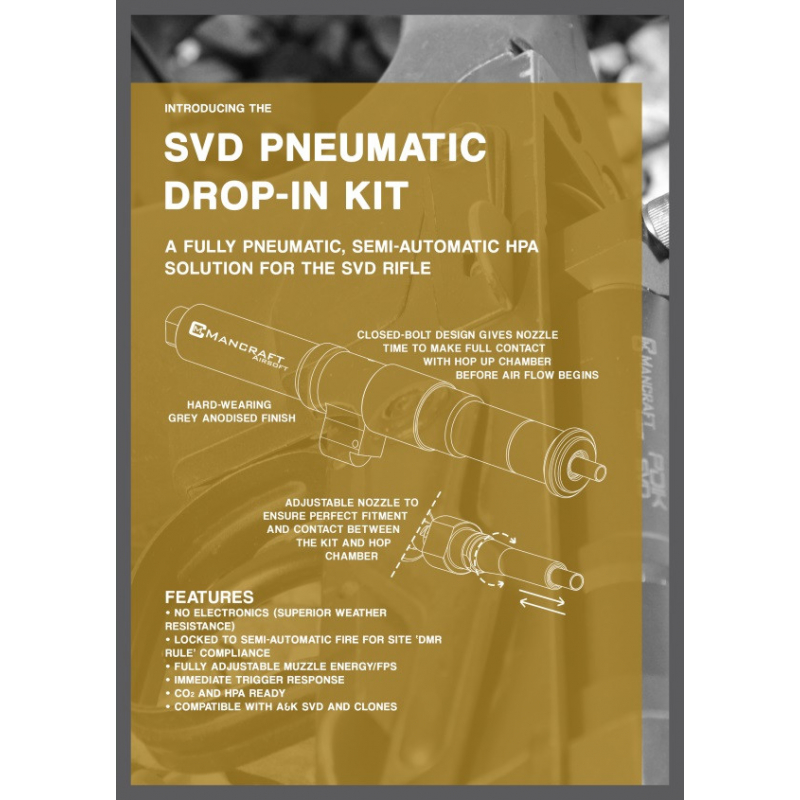 PDIK SVD - Pneumatic Drop in Kit SVD standard- a set of components which allows converting a spring rifle into gas-powered rifle. It is cheap and very effective method of upgrade.