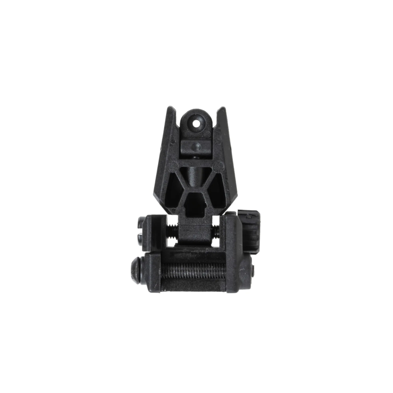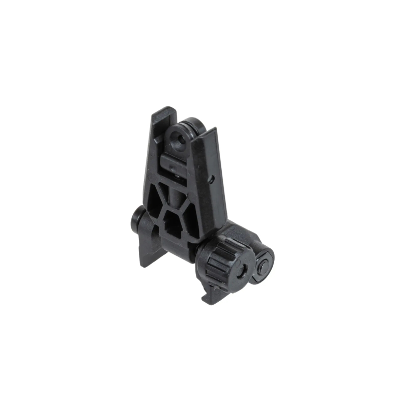 This rear folding sight is a standard accessory for M4 / AR15 series EDGE and EDGE 2.0 rifles from Specna Arms. It is made of high-strength polymer, ensuring low weight while maintaining high durability during use. The sight features a low-profile design, preventing obstruction when using optics or a red dot sight. It is secured with a metal screw and nut, allowing for firm attachment to any weapon with a RIS rail.