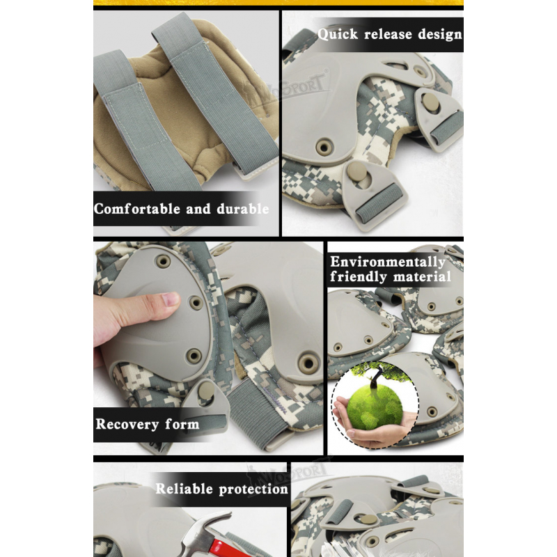 Set of durable quick release elbow and knee pads.