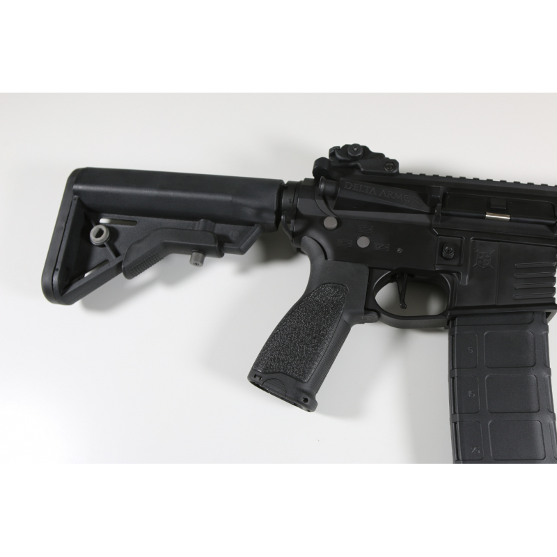 Attention to detail on the external parts of the weapon is a matter of course, as you are accustomed to from EPeS airsoft production. A perfectly fitted all-metal AR15 from Delta Armory with a 13" M-Lok handguard. The body is painted in matte black for an elegant design.
