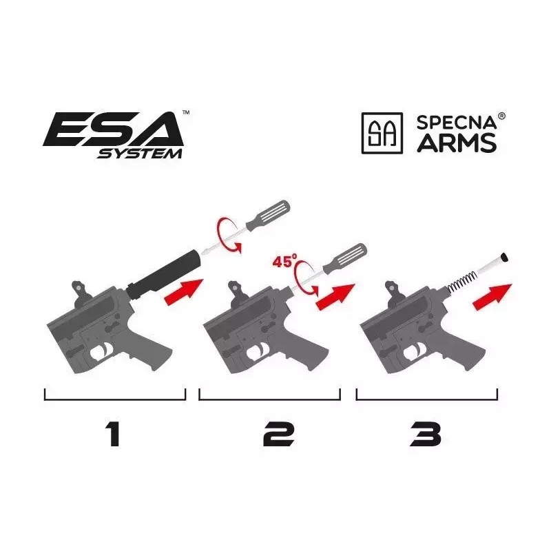 Additionally, a feature that is becoming increasingly common nowadays is the QSC system ESA (quick spring change), which allows you to install a stronger or weaker spring according to your preference. The spring can be changed without removing the gearbox from the weapon's body, everything is done easily through the buffer tube.