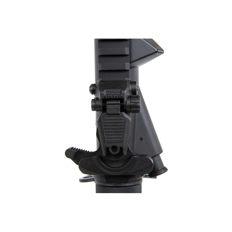 The rifle boasts high-quality external craftsmanship with a Nano Coating surface treatment, offering increased scratch resistance and damage protection. The matte-painted body gives it an elegant look. The ergonomic AR15 design and modern construction ensure comfortable handling and easy operation. The CNC metal M-LOK handguard MK18 R3 Daniel Defense allows the attachment of various accessories such as grips, AN/PEQ box, flashlight, etc.