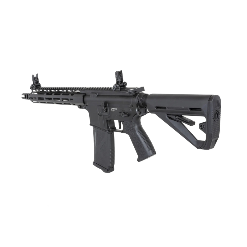 The AR15 CQB FE™ by Arcturus is a high-end airsoft rifle that combines modern technology with the classic AR-15 design. Thanks to its precise construction and robust build, it delivers excellent performance straight out of the box. The body is made from die-cast aluminum, just like the handguard, with a hard anodized finish, ensuring high durability and longevity. Simply put, it’s a solid piece of aluminum that stands out compared to competitors' alloy bodies.