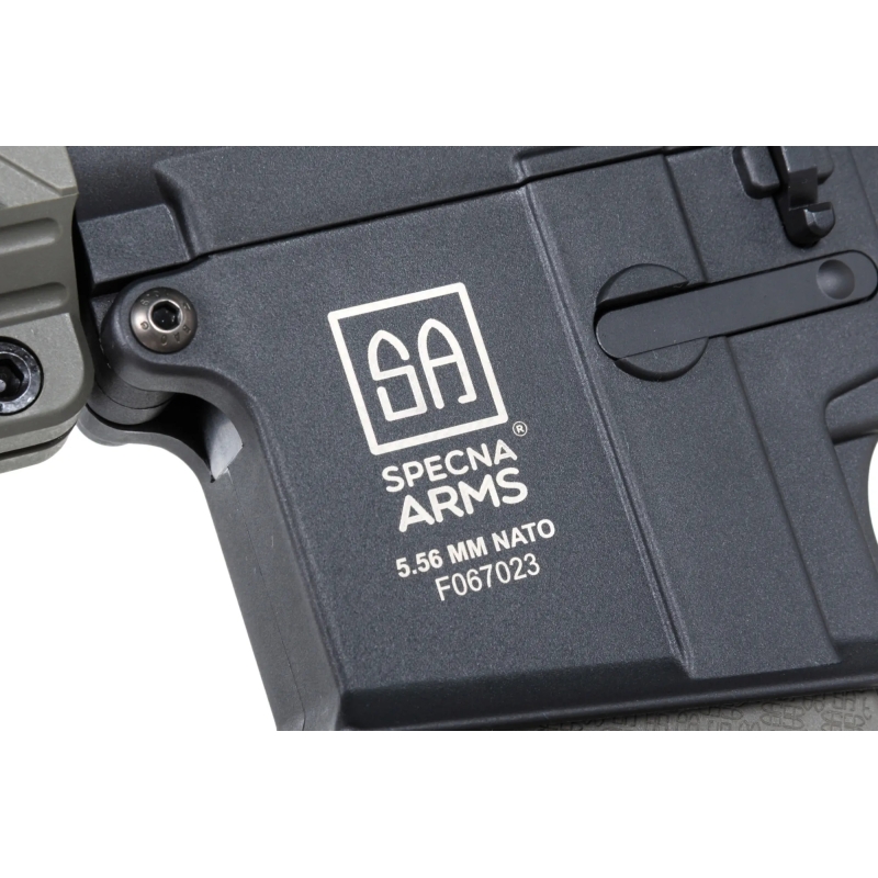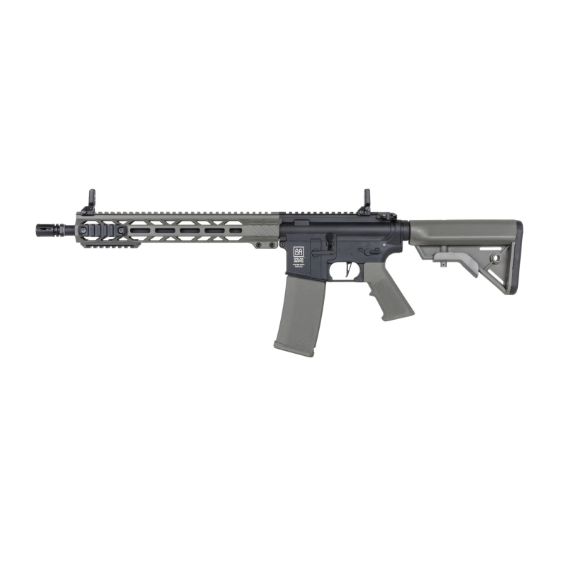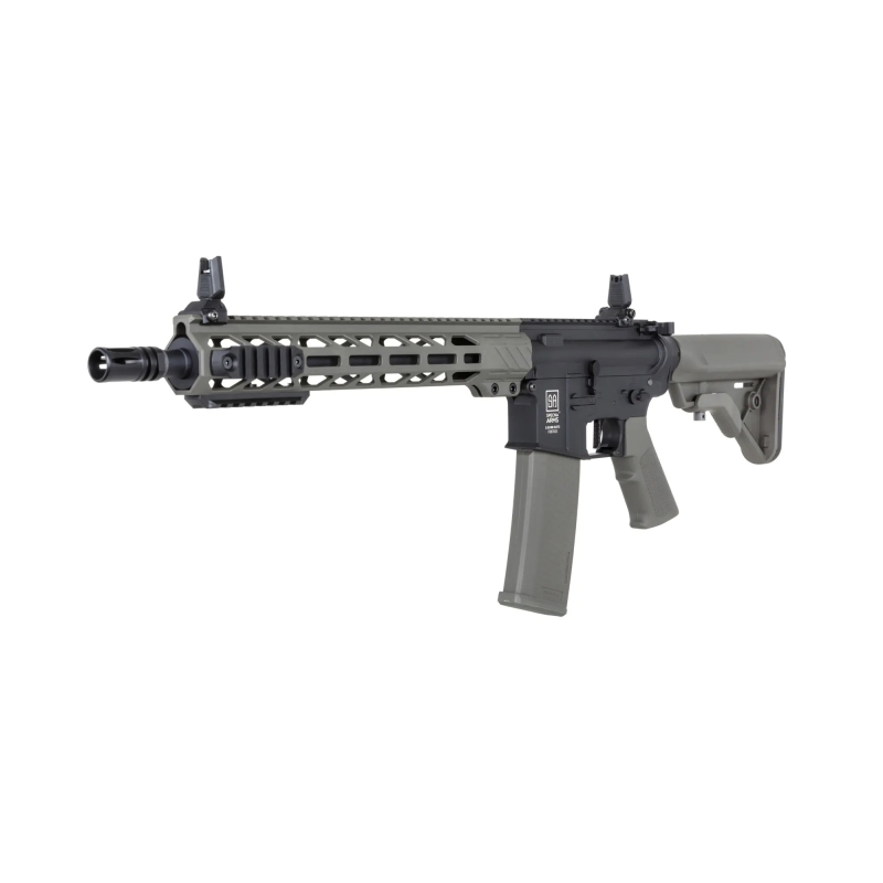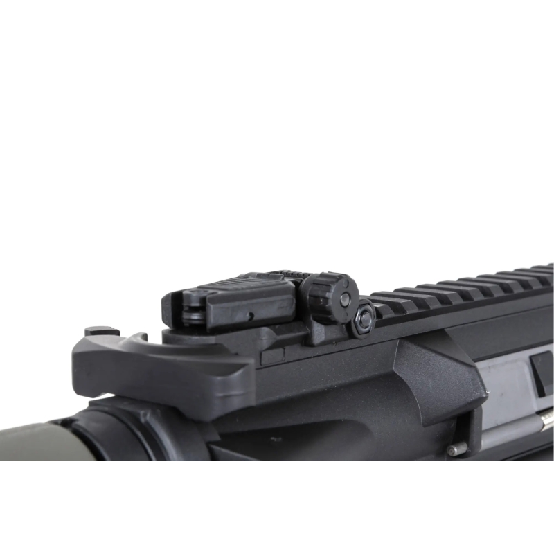 The Specna Arms M4 Carbine M-LOK Gen2 (SA-F09 FLEX™ BLDC™ HAL ETU™) stands out with a high-quality nylon receiver featuring a matte finish and a very realistic look. Thanks to glass-fiber reinforcement it’s very durable and lightweight. The outer barrel is metal, and the screws, ejection cover and pins are steel. The ergonomic AR15 design and modern construction provide a comfortable grip and easy handling—this rifle just fits your hand! The M-LOK handguard lets you mount accessories like a grip, AN/PEQ box, flashlight, etc. With the adjustable Crane type stock there’s room for larger batteries (Buffer Stick, Nunchuck or Crane). Overall, it’s a rifle that combines low weight and premium internals with an attractive price.