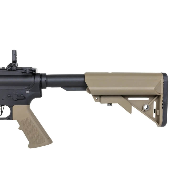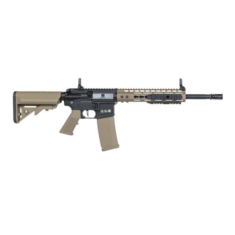 AEG airsoft assault rifle M4 Keymod (SA-C09) from the CORE™ Gen2 series by Specna Arms in black and tan.