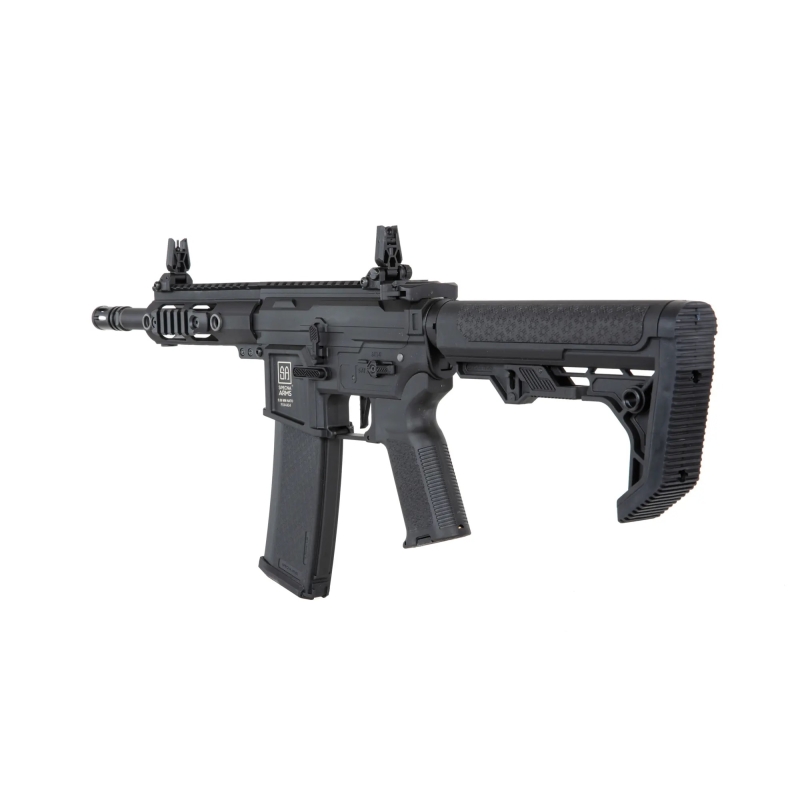 Specna Arms M4 CQB RL M-LOK Gen2 (SA-F04-RL FLEX™ HAL ETU™) in black finish is a high-performance airsoft rifle with 115 m/s power and upgraded internals. It features a HAL ETU™ processor unit with pre-cocking and trigger sensitivity adjustment, along with a nylon RL AR15 body and M-LOK handguard. The TDC hop-up chamber with Helium™ flat bucking ensures excellent accuracy.