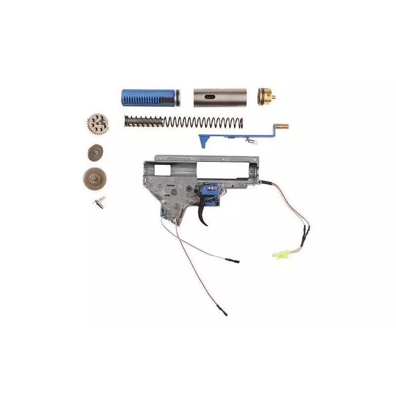 The gearbox is reinforced and includes superior internal parts (listed below in the description), and the manufacturer states the gearbox's durability up to a M120 spring.