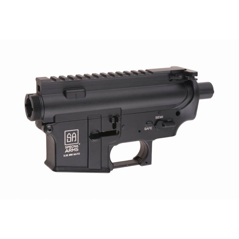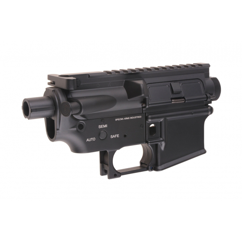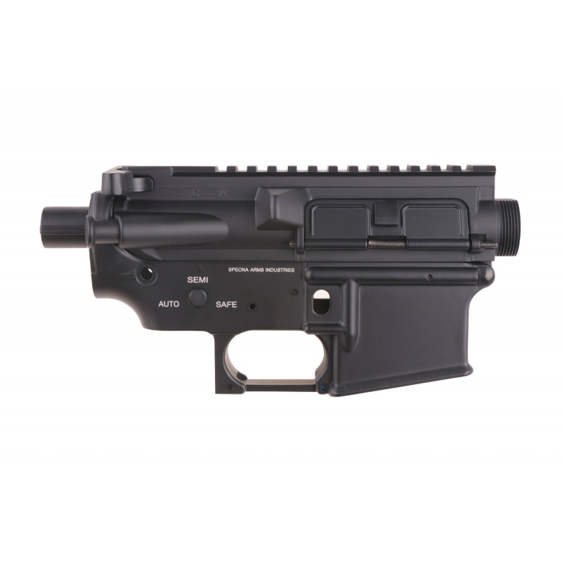 A metal receiver manufactured by Specna Arms is characteristic for its quality craftsmanship and durability. At the top is an integrated 22 mm mounting rail. Due to the use of a metal body the gearbox is offered a significantly better protection against damage. In addition, elements such as the charging handle and an operational slide lock noticeably increase the level of realism. The shell ejection window is opened using the charging handle. The receiver is intended for standard gearboxes without SAEC system.