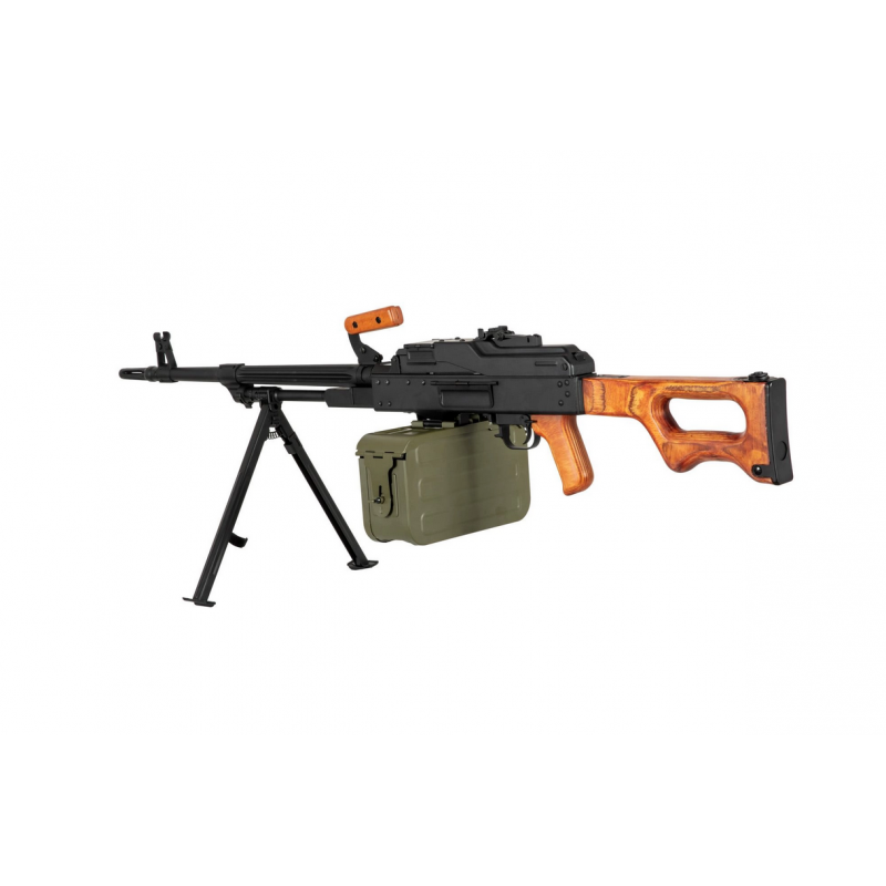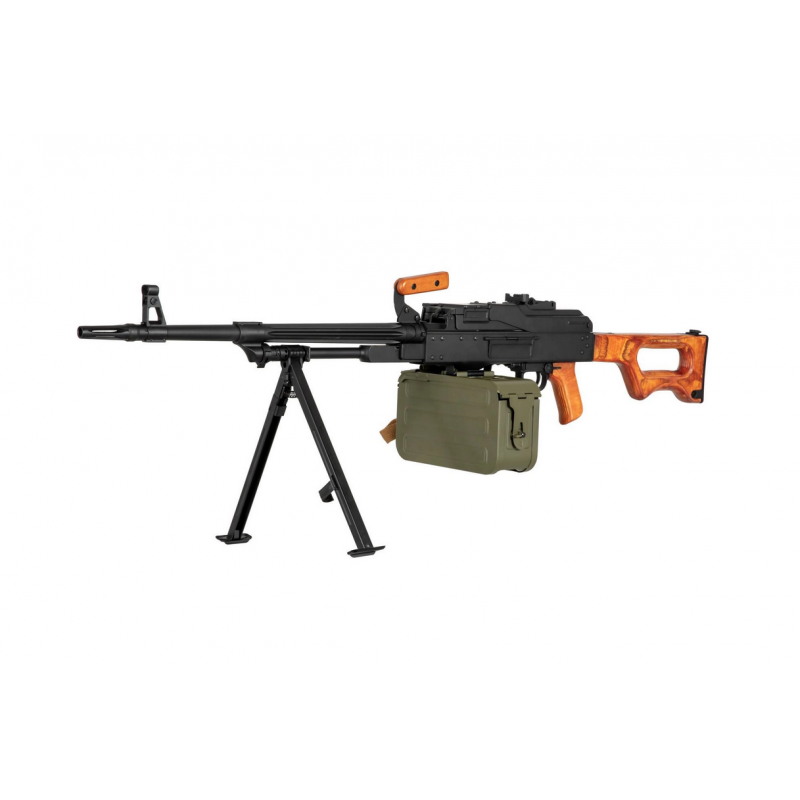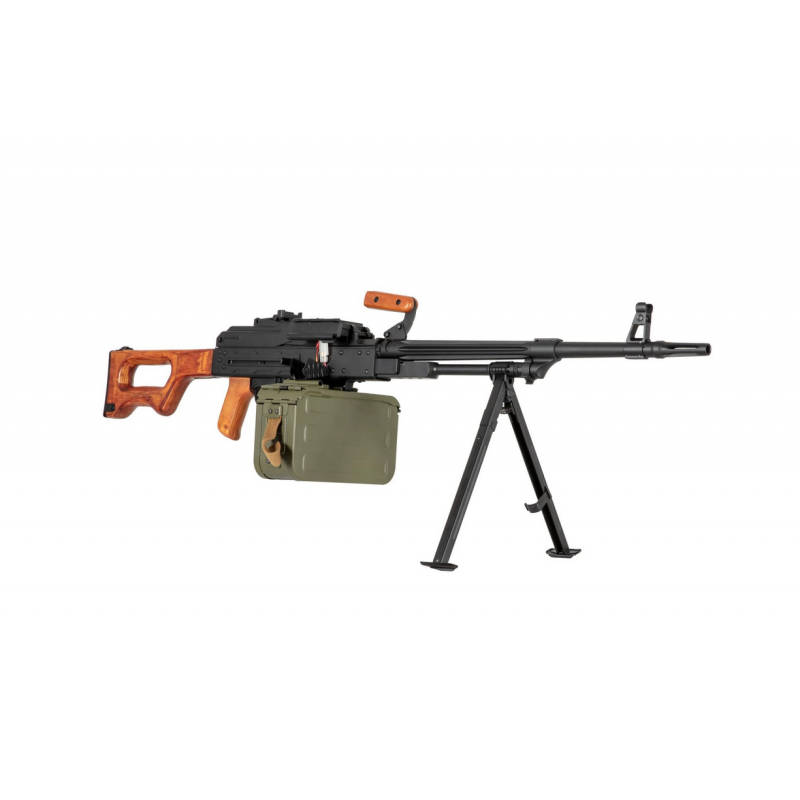 The PKM, designed in 1961 and adopted by the Soviet Army, is one of the iconic machine guns used during the conflicts in Afghanistan and Iraq (yes, Rambo had one too). This electric airsoft replica by A&K is a faithful reproduction of this famous machine gun, sure to please all fans of Russian weaponry.
