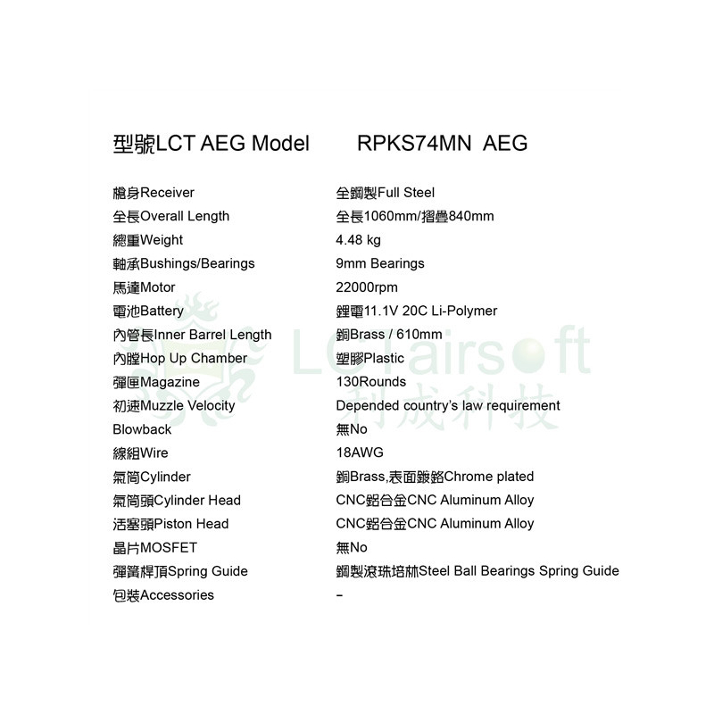 The Taiwanese company LCT produces some of the most realistic replicas and weapons on the market. It focuses on AK, AR, HK platforms. Their bodies are made of steel and copy the production processes of sharp originals. LCT replicas are known for high reliability, long life and attention to detail. The assortment also includes spare parts and a wide range of quality accessories.