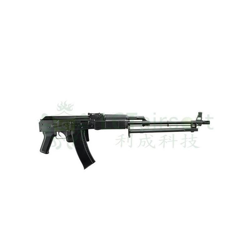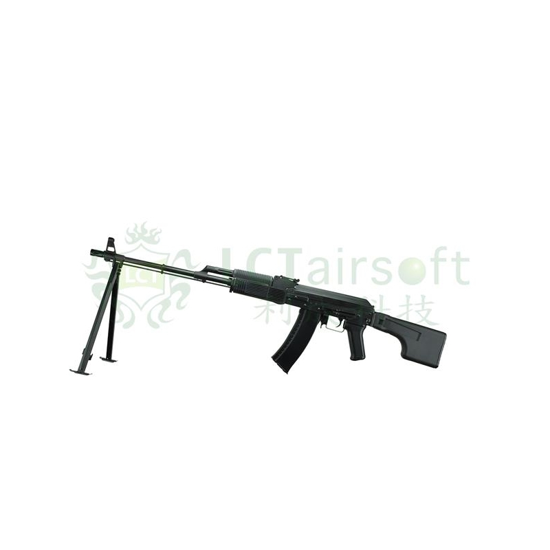 The LCT RPK74MN is a replica of the Russian RPK74M infantry machine gun. The gun has a beautiful steel body that is identical to the original model. The machine gun has a long outer barrel on which we can find folding legs and a front sight. There is a mounting rail on the side of the gun body for placing optics. The stock is foldable just like the military version, the stock is made of polymer.