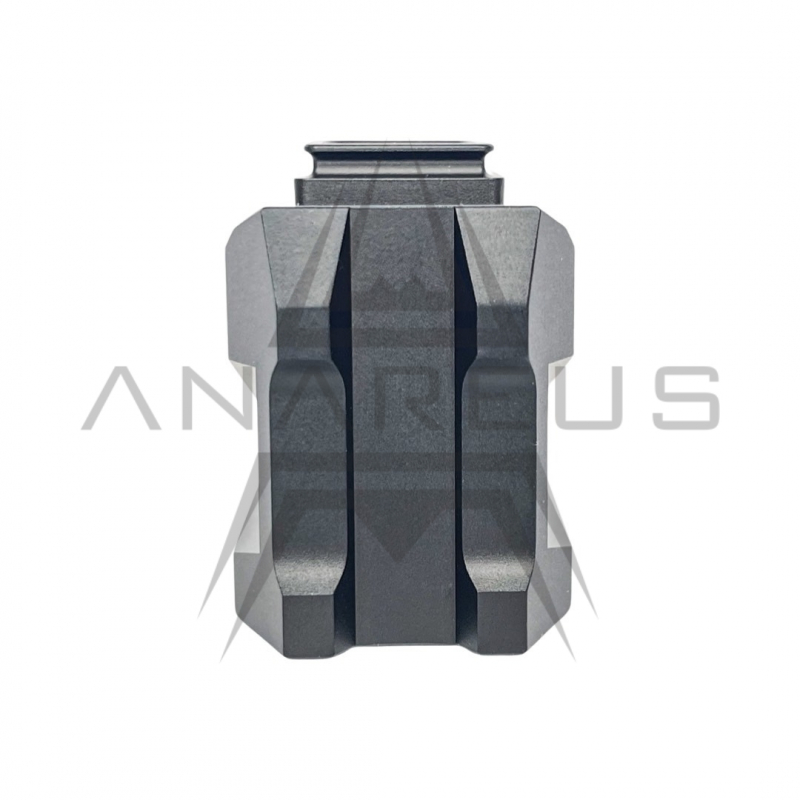 CNC Aluminum Magwell for airsoft pistols AAP-01 / AAP-01C GBB by CTM TAC in black. Enlarged magazine well for faster and more intuitive reloads. 200% WOW effect, a visual and functional upgrade. Compatible with both the original and CTM frames and fully functional with HPA adapters.