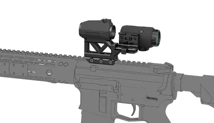 Looking for a universal optic setup that lets you switch seamlessly from close-quarters to mid-range targets? Want a compact red dot sight with a 3 MOA dot and the option to add instant magnification with a flip-to-side magnifier? Or perhaps you need a lightweight and rigid optic mount that saves rail space while maintaining perfect alignment? Then the Maverick combo from Vector Optics is exactly what you need. The Maverick 1x20 red dot provides fast, parallax-free aiming with a 3 MOA dot and 10 brightness levels. Its side-loading battery tray allows for battery replacement without re-zeroing. The Maverick 3x22 magnifier delivers sharp 3x magnification, features a rubber-coated housing, and includes a Flip-to-Side quick-detach mount for instant transition. Both optics are made from aircraft-grade 6061-T6 aluminum and sealed for water resistance. All lenses are FMC coated for maximum clarity. Mounted together on the HYDRA-type one-piece RIS base, they maintain perfect alignment and an optimal aiming height of 57.4 mm.