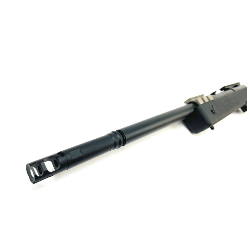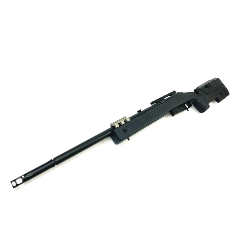 The foundation of this build is the M40A5 rifle from Cyma (S&T) with a black barrel, receiver, and stock. This perfectly assembled weapon features MARKSMAN configuration internals with a complete upgrade delivering 3.4J of power (185 m/s with 0.2g BBs) and an included functional suppressor.