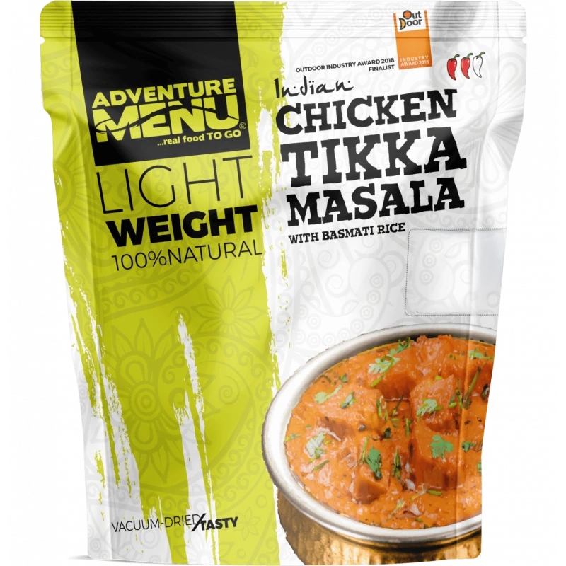 Adventure Menu | Lightweight ready meal Chicken Tikka Masala with basmati rice (600 g after preparation) offers minimal weight while maintaining maximum flavour thanks to the freeze drying method Vacuum-Dried / Tasty. The meal is cooked from 100% natural ingredients and only hot water is needed for preparation (MRE – Meal-Ready-to-Eat). ANAREUS offers various flavours including vegan options.