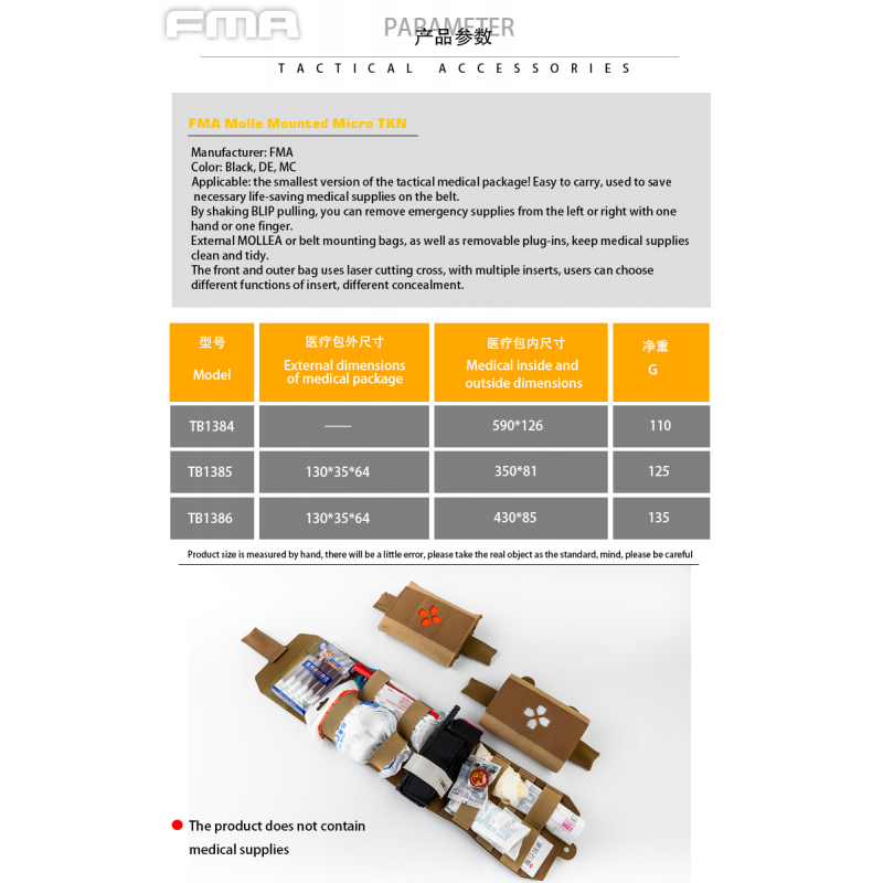 The pouch does not include medical supplies.