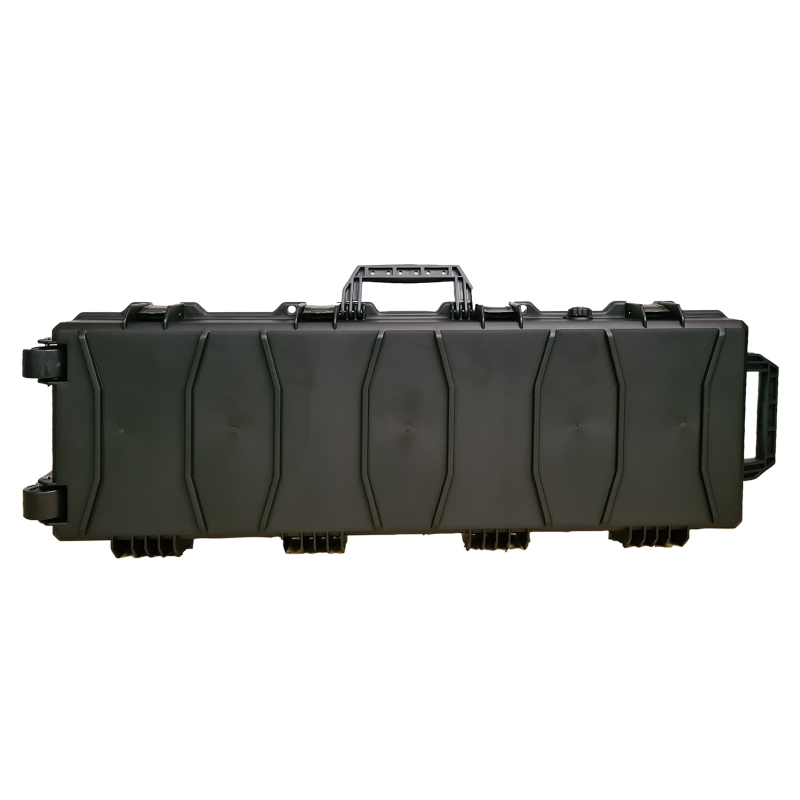 Hard Case Gun Transport Case 100 x 35 x 14 cm by Nimrod Tactical in black. Secure storage and transportation. Protective Wave foam. Transport wheels. Dustproof and waterproof (IP67). Lockable with padlocks. Internal dimensions 93 x 29 x 9 cm. Suitable for rifles like M4, HK416, AK, submachine guns like CZ Scorpion EVO and more.