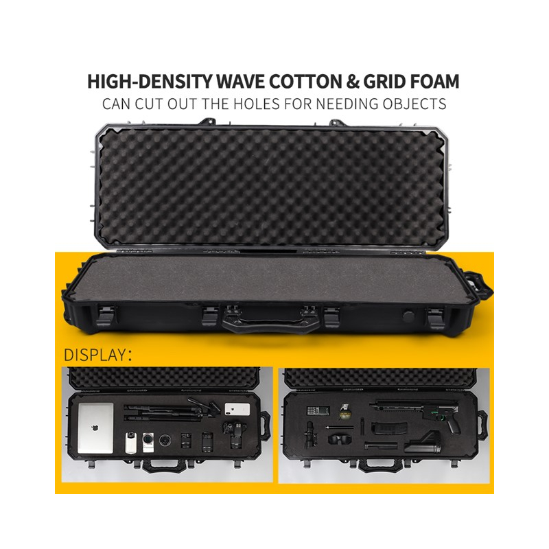 The case is made from tough plastic resistant to scratches and impacts. The internal Pick and Pluck foam insert lets you shape the cutout precisely for your gun and accessories by removing sections as needed. Water and dust protection is provided by IPX7 certification and a high-quality EPDM gasket around the entire lid. The case features 4 latches and 2 holes for padlocks, wheels for easy movement and 2 heavy-duty handles. Thanks to the stackable design, it saves space during storage and team transport. We like PnP cases mainly because they are easy to customize, you can store the gun with a rifle scope, red dot sight or suppressor, or with a foregrip attached, and you do not have to worry about damage from vibration, because you shape the foam to match your exact configuration.Another advantage is the Air Valve pressure relief valve, which equalizes atmospheric pressure, making the case suitable for air travel as well.