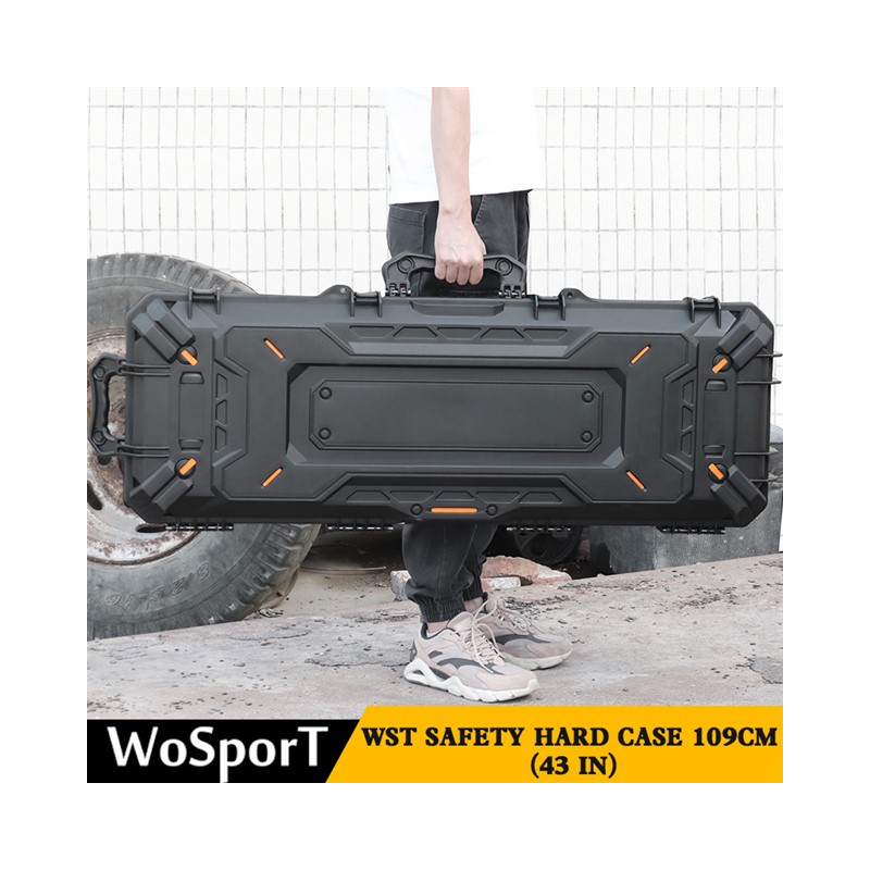 WoSporT PnP gun transport case 109 × 41 × 17 cm in black is a rugged, waterproof hard case designed for safe storage and transport of long guns up to 103 cm in length. Thanks to the Pick and Pluck foam system, you can easily tailor the interior exactly to your setup. The case is suitable for air travel and features wheels for easier handling.