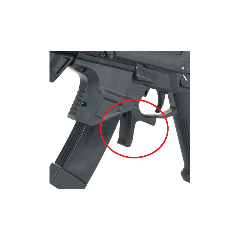 This enlarged magazine catch is a practical upgrade for your ASG CZ Scorpion EVO 3, designed for faster and more comfortable handling. Thanks to its expanded contact area for thumb and index finger, it's easy to locate even when wearing gloves or under pressure. You can also release the mag using your trigger finger, speeding up reloads during action. The catch is made from precision CNC-machined aluminum alloy, ensuring durability while keeping weight low. It directly replaces the stock part but requires reusing the original return spring and pin (not included). A great upgrade for any player looking to improve reload speed and weapon control.