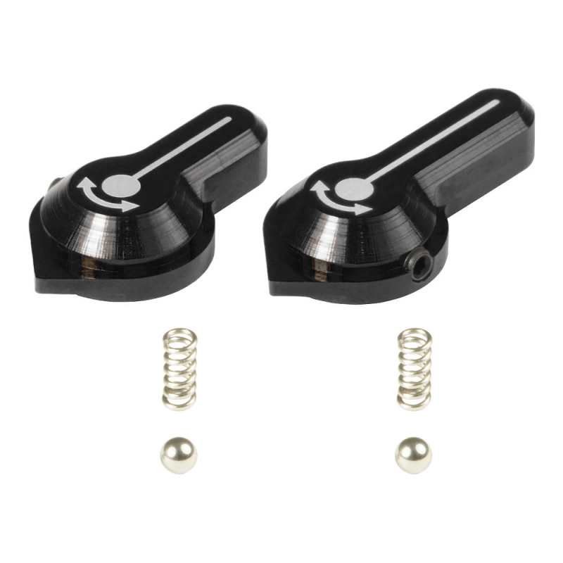The selector lever set includes 2 different lever lengths. The long lever is mounted on the left side, and the short lever is placed on the right side of the lower receiver of VFC SCAR-L/H AEG (reversed for left-handed users).