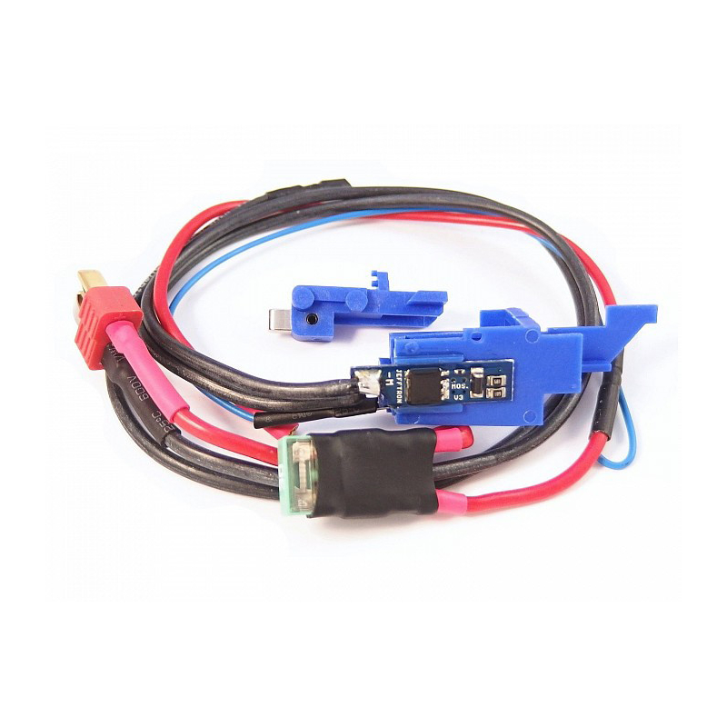 MOSFET V3 is a professionally designed electronic switch without active braking, placed directly inside the gearbox. It replaces traditional mechanical current switching through trigger contacts. This prevents contact burning, prolonging their lifespan and improves the efficiency of the gun’s electrical circuit. The device increases the rate of fire and extends battery life compared to standard wiring. It is a compact module installed directly on the trigger contact board, ideal for experienced technicians and service shops as installation requires advanced knowledge of AEG replicas.