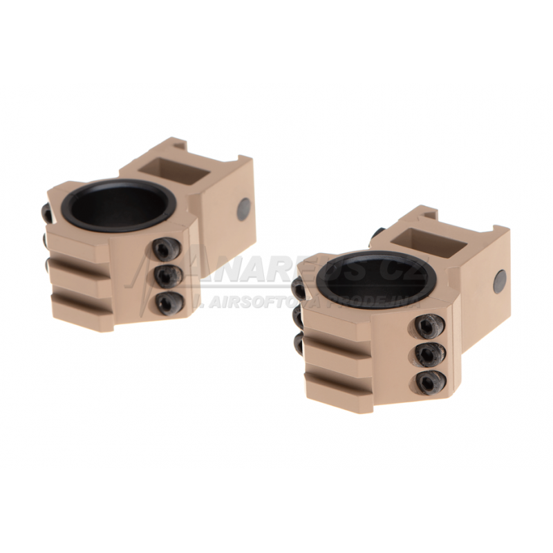 25mm Scope Mount Rings by STRIKE SYSTEMS®. High version for Scopes and red dot sights with a 25mm tube. Compatible with RIS / Weaver rails 21 mm. Durable metal construction. Set of 2 pieces.