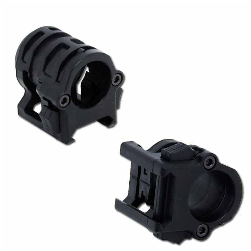 View larger The quick-detach mount by FMA allows for easy and rapid attachment of flashlights or laser sights with a diameter of 20 mm to standard RIS rails. Thanks to the QD mechanism, it can be quickly secured or removed without the need for tools. The mount ensures firm attachment and, due to its nylon polymer construction, is lightweight yet resistant to impacts and wear.