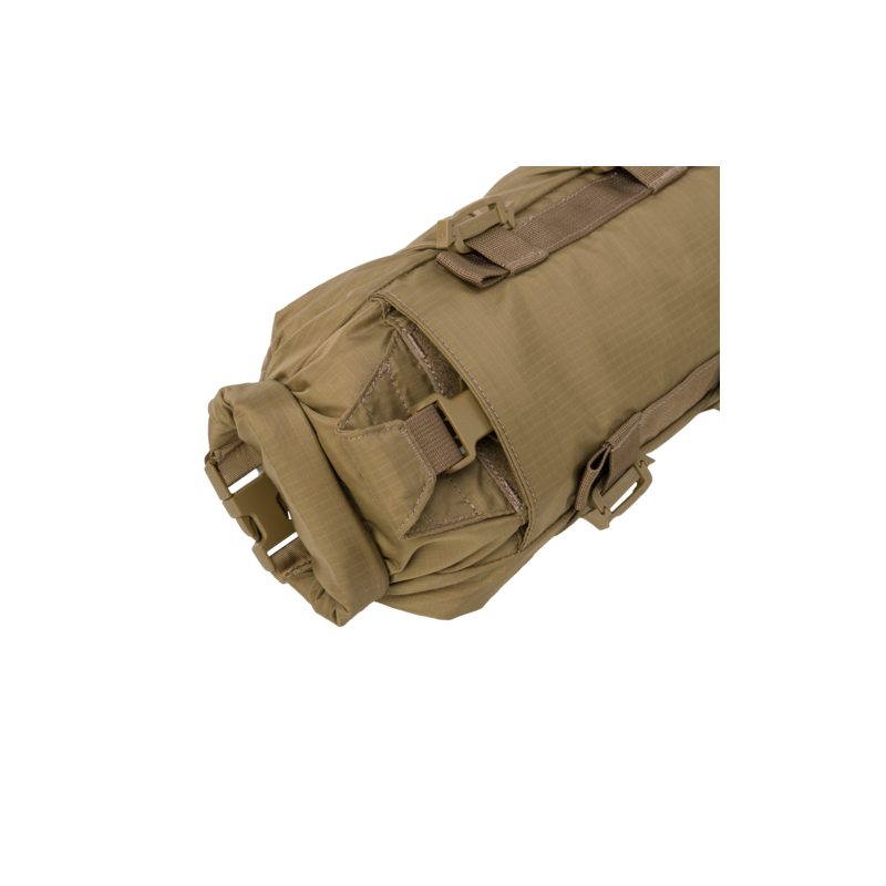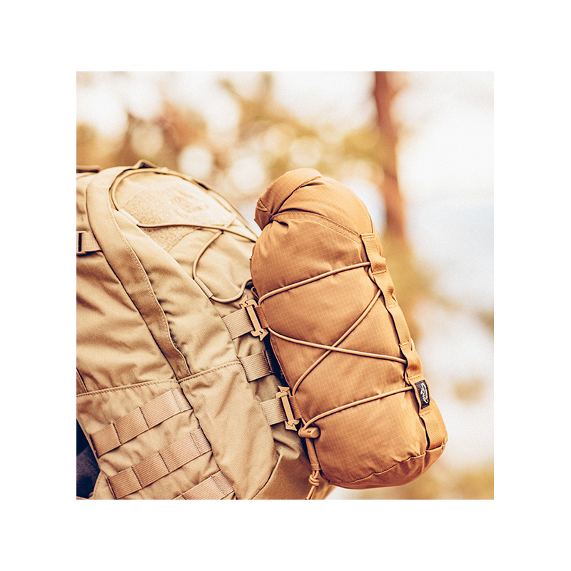The bag easily holds a 1-liter water bottle, a thermos, or a jacket similar in size to the Wolfhound by Helikon. Quick access to the contents is ensured by a Fastex buckle that can be opened with one hand.